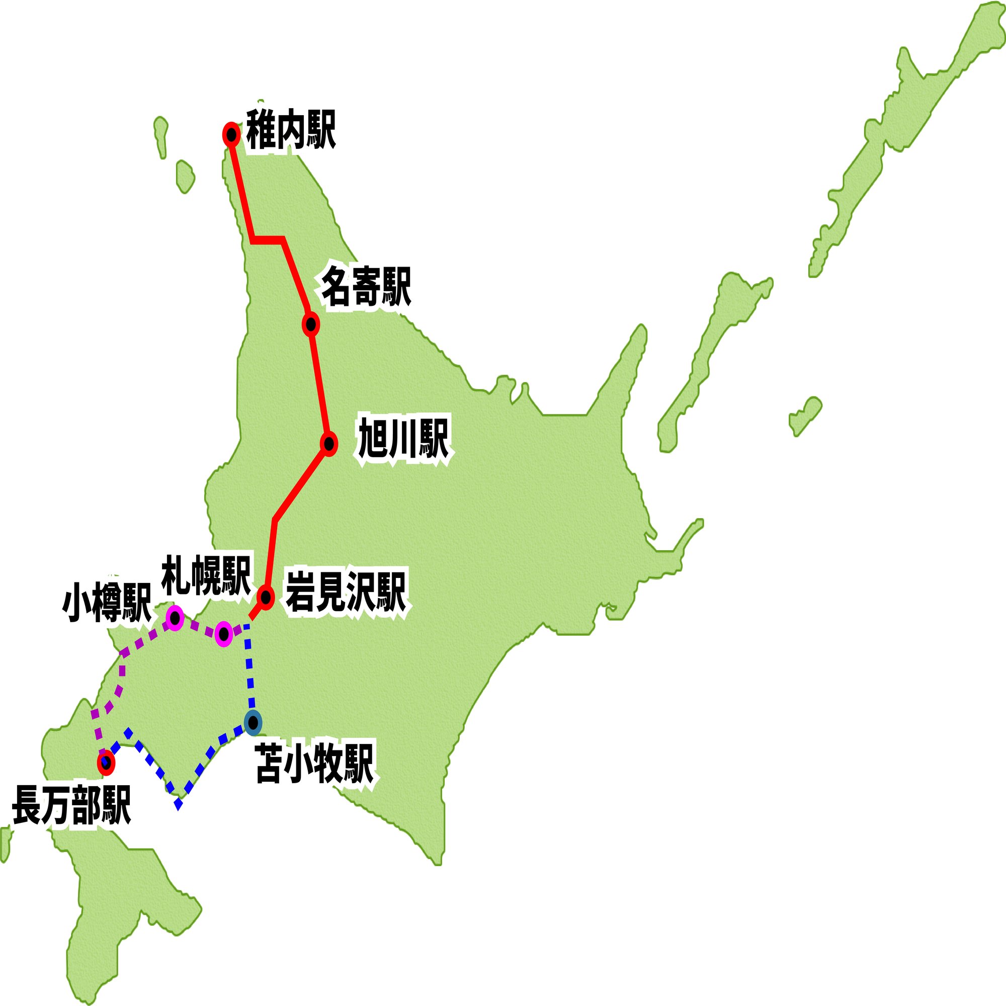稀府、北舟岡、伊達紋別、長和、有珠、洞爺、豊浦、大岸、礼文、小幌、静狩、長万部(123駅)