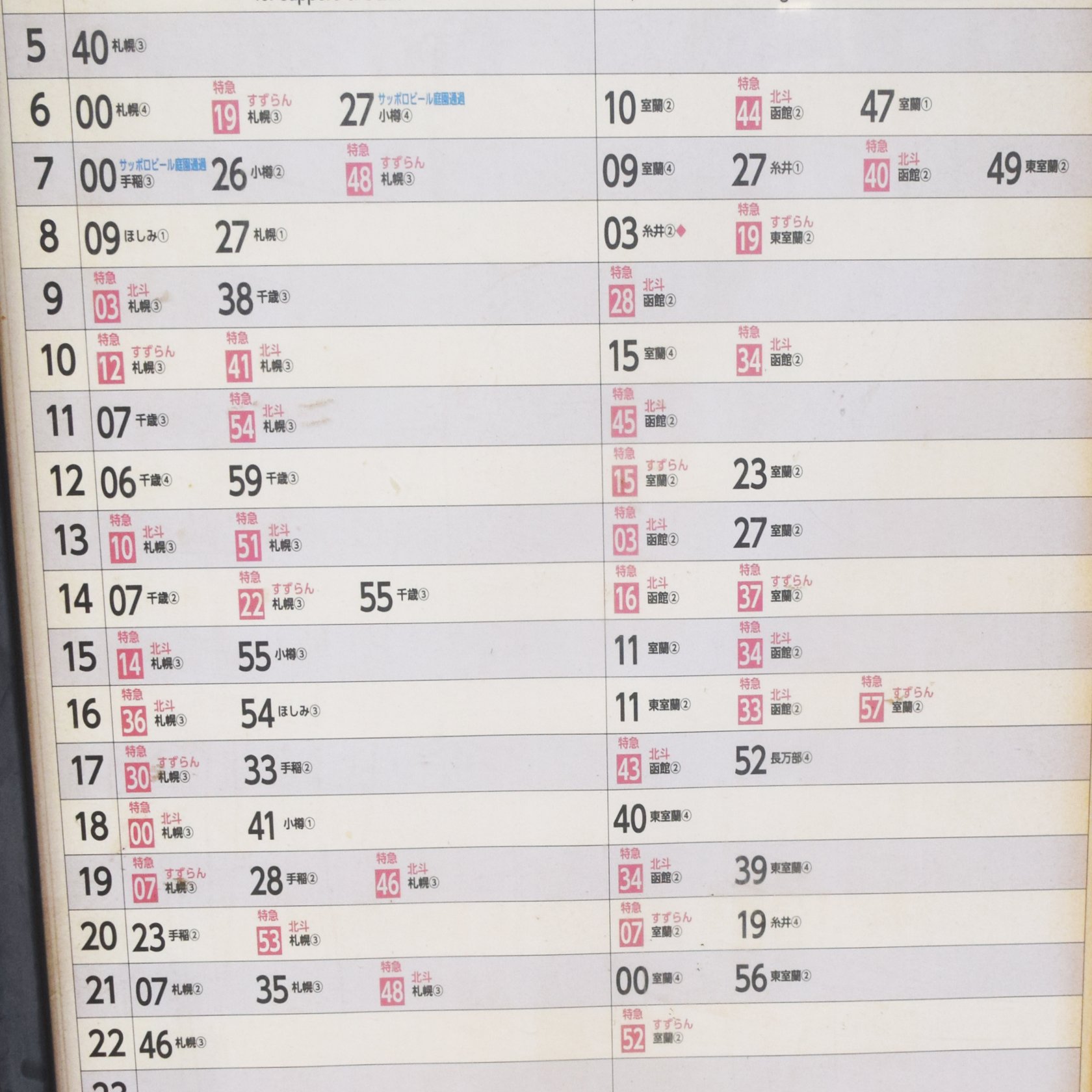 どうも午前中の列車は函館方面、札幌方面、すべて運休らしい。これ特急列車しか記載されてないけど、もちろん普通列車も函館方面は運休。