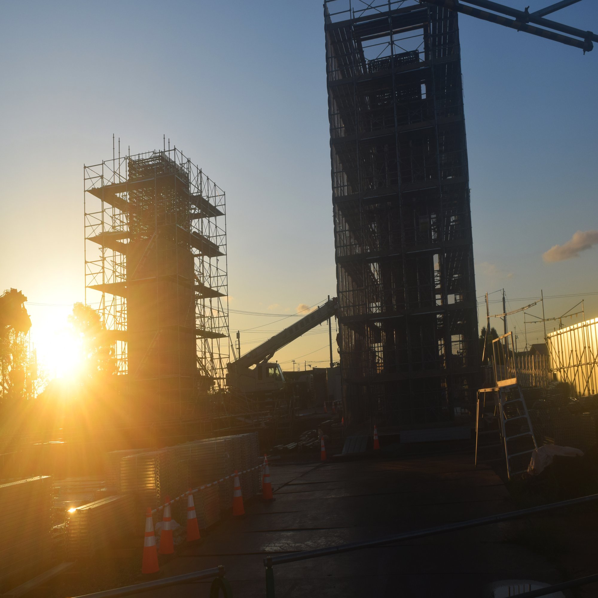 駅の近くで大掛かりな工事が行われていた。おそらく線路をまたぐ跨線橋を作っているのだろうけど、そこまで高くしなくてもいいだろうと言いたくなるほどに大きな柱をぶっ立てていた。これ、相当に大規模な工事だぞ。長万部にこんな高さの橋脚が必要なのだろうか。
