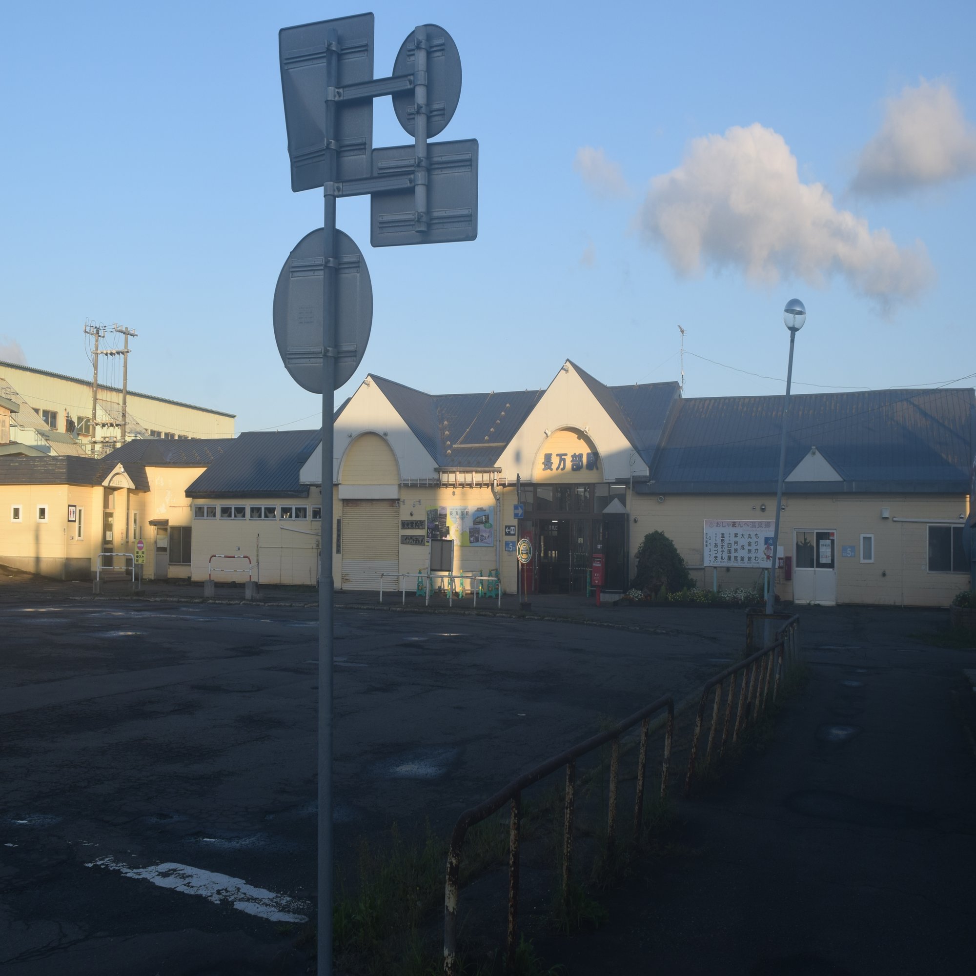 長万部駅に到達した。昨日、絶望した闇の駅も今は柔らかな光に包まれている。しかしながら、なんだか様子がおかしい。なんだかひっそりとしている。