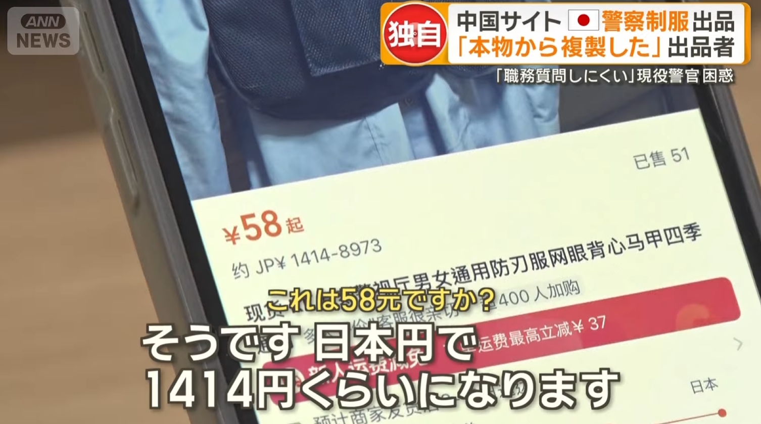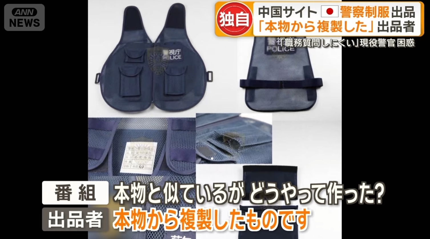 中国のショッピングサイトで日本の警察や自衛隊の制服とみられる商品が出品されている実態が明らかになりました。出品者に取材をすると「本物から複製した」などと回答。タグには「警視庁・装備品」や「令和7年度」といった日本語が書かれていて、現役の警察官でも見抜けないほど精巧に作られています。防衛省は「厳格な管理を行ってまいる」、警察庁は「都道府県警察に対して指導していく」とコメントしています。