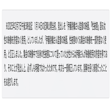 当初は、見出し下にあった訂正部分が、2026年1月13日現在では文末に移動されています。下までスクロールしない人(多くのネットユーザーがそうでしょう)にとっては、この記事にある伊藤さんによる権利侵害が正確なものであるかのように見えます。