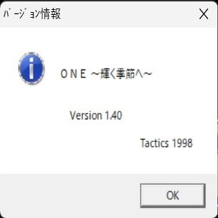 本メモは株式会社ネクストンのブランドであるTacticsが1998年に発売した作品「ONE 〜輝く季節へ〜」をWindows11(24H2)にインストールしたメモです。