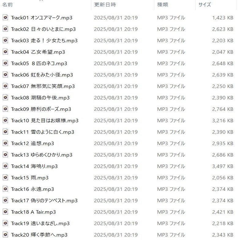 例えば15 雨.mp3というファイル名のファイルがあれば、Track15 雨.mp3に名前を変える。Trackの後につける番号はフォルダ内に表示されるトラック番号と一致していること