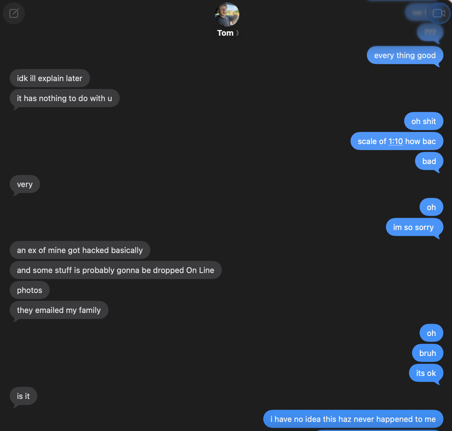 You came to the right place. Tom won’t address if he can. Crazy if true. Tom’s a case study people started noticing because of his behavior. Meeting tom off tinder lol. Most of the guys with online platforms are strange.i promise all of this is real! i can post more screenshots but i am a little scared of him coming after me cause im a normal person and his "just in case" file lol