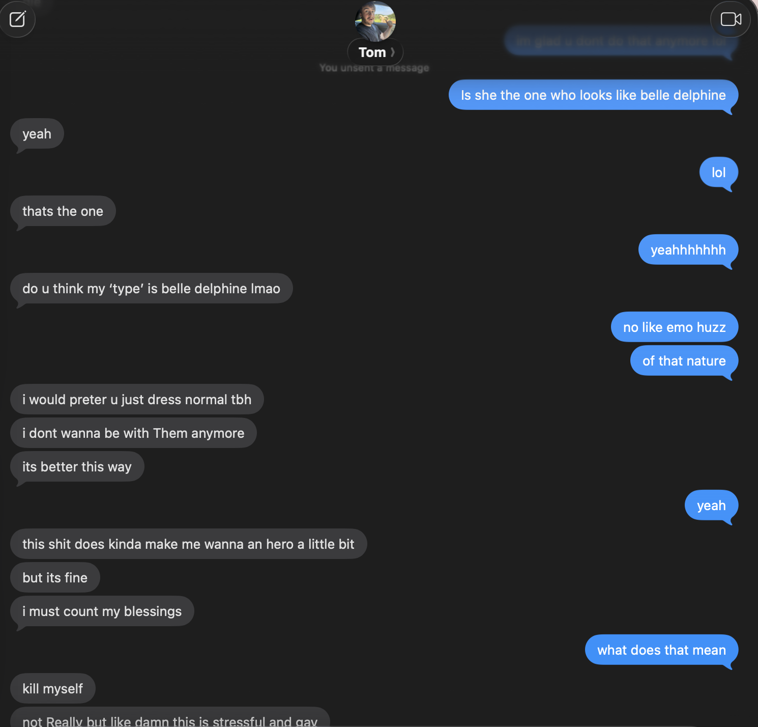 Not even two weeks into the year and a potential drama storm is a brewing.Hi kiwi people I dated Tom for a few months after meeting him on Tinder. Im not super into internet stuff and had no idea what KiwiFarms was, but this page was always his number one searched Safari thing that pops up on iPhone when he went to Google something. When I asked about this website he got super defensive and weird about it, so I obviously looked into it and found all of this crazy shit. (Like him admitting to being bisexual?) Messaged the owner of this website Joshua Moon to get the code to post here. Basically I started to get suspicious about all the egirls hes followed/interacted with and he started raging at me. He also lied to me at first about the fact he does YouTube. He did some crazy shit like kicked holes in a wall at a house he was renting cause some egirl who copies belle delphine got hacked and the “hacker” was blackmailing him with his dickpics. He continued to talk with her after the fact. I have screenshots confirming all of this, attached a couple but i think i have more.