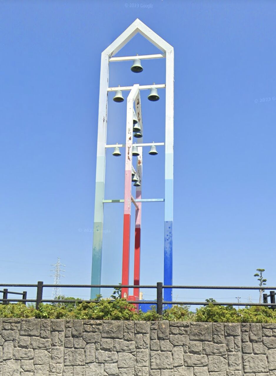 掛川市でいうと海側の方に「コミュニティ公園」があり、柱にカラフルなペイントがされたカリヨンが設置してあります。