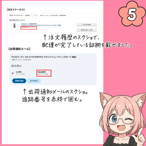 本当に出荷されて配達されているかの証明でこの2点を貼りました。
