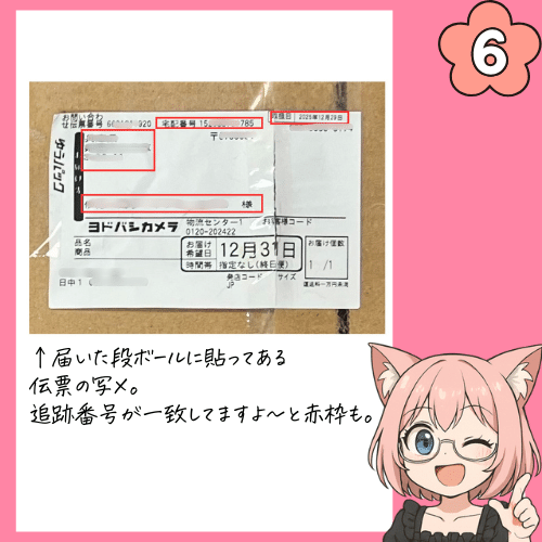 (6ページ目)届いた段ボールに貼られてある伝票