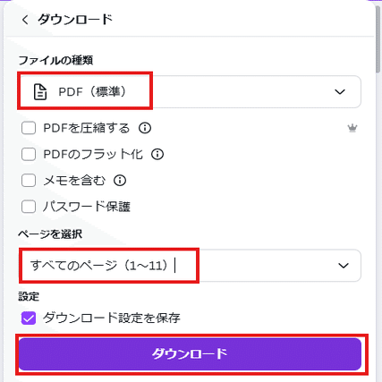あとは、CanvaならPDFでダウンロードすればOKです。