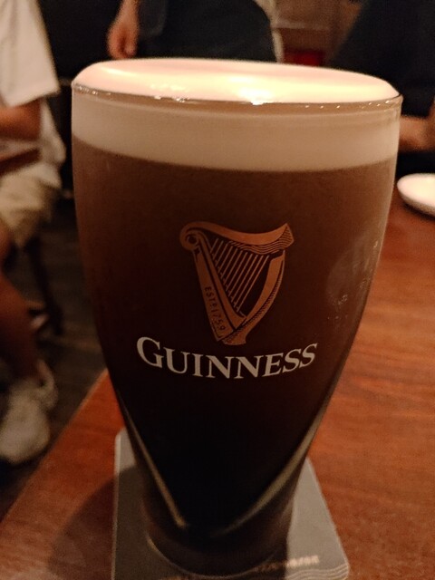 ドリンクはもちろんギネスビールを1パイント。普段ビールを飲まない自分でも、この濃厚さとまろやかさは特別感あり。1杯でじっくり楽しめるのも◎。