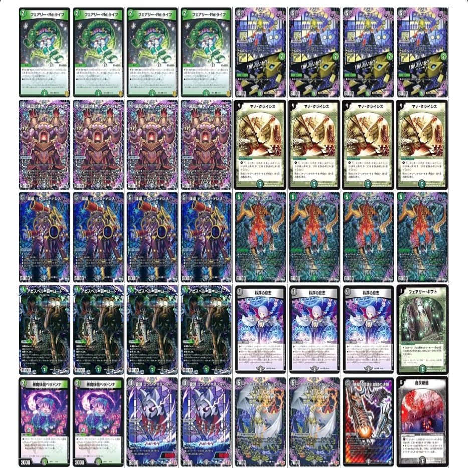 このデッキは2ターン目にブーストが打てないと次のターンは《フェアリー・ギフト》が絡まない限りは妨害が何も出来なかったが、このカードはブーストが打てなくても3ターン目にプレイできるカードである上に、《マナ・クライシス》との噛み合いが良く、さらにハイパー化で《アビスベル=覇=ロード》をタップさせることによって相手の打点を減らすことができて安定感がとても上がるカード。