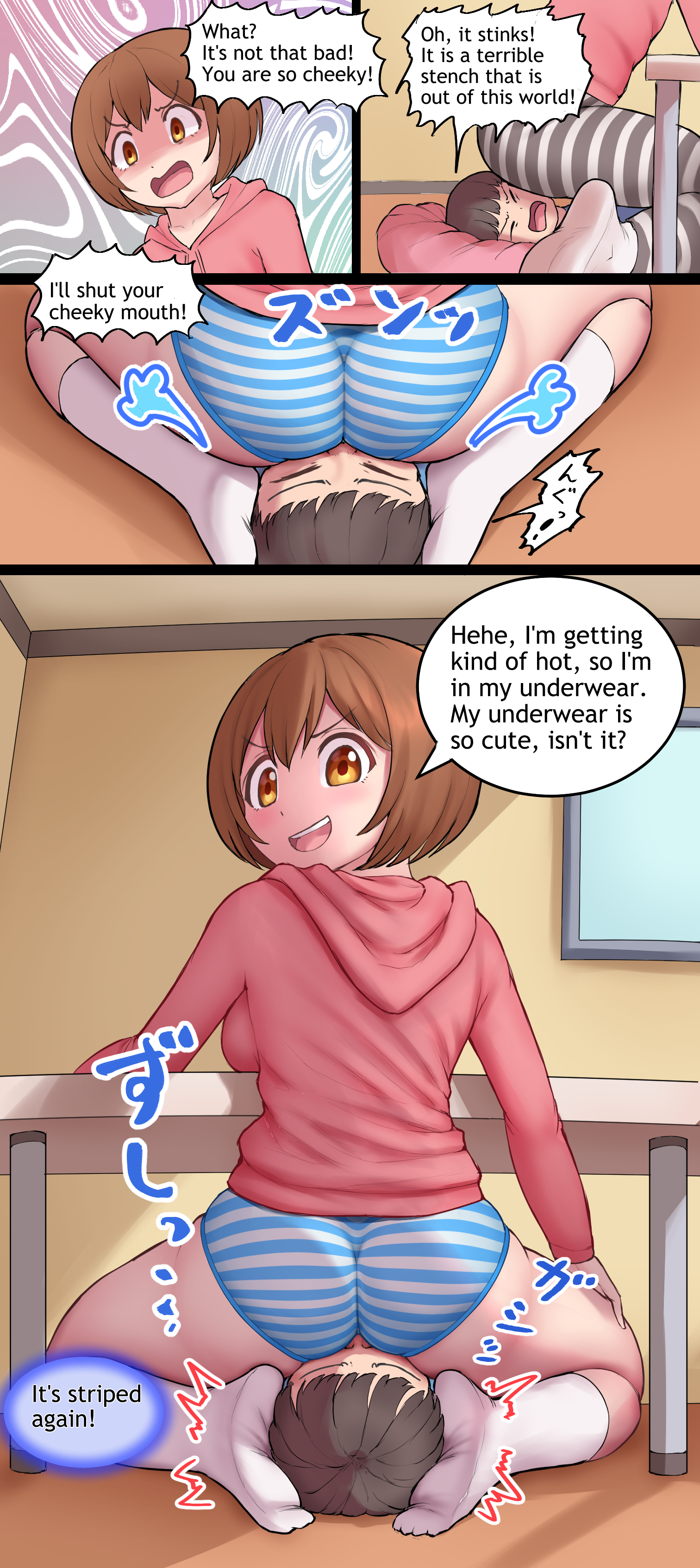 ใคใฉในใๆดๆฐใใพใใใ ๅพๅ ๅผใฎใใใใใใซใใใใจใใชใใงใไป็ฝฎใใใใใๅ ็ใ ใใฎไฝๅใฏใใฎใใผใธใง็ตไบใงใใ Illustration updated. Aya-sensei punishes her cousin Eita with buttocks and fart. This is the last page of this work.