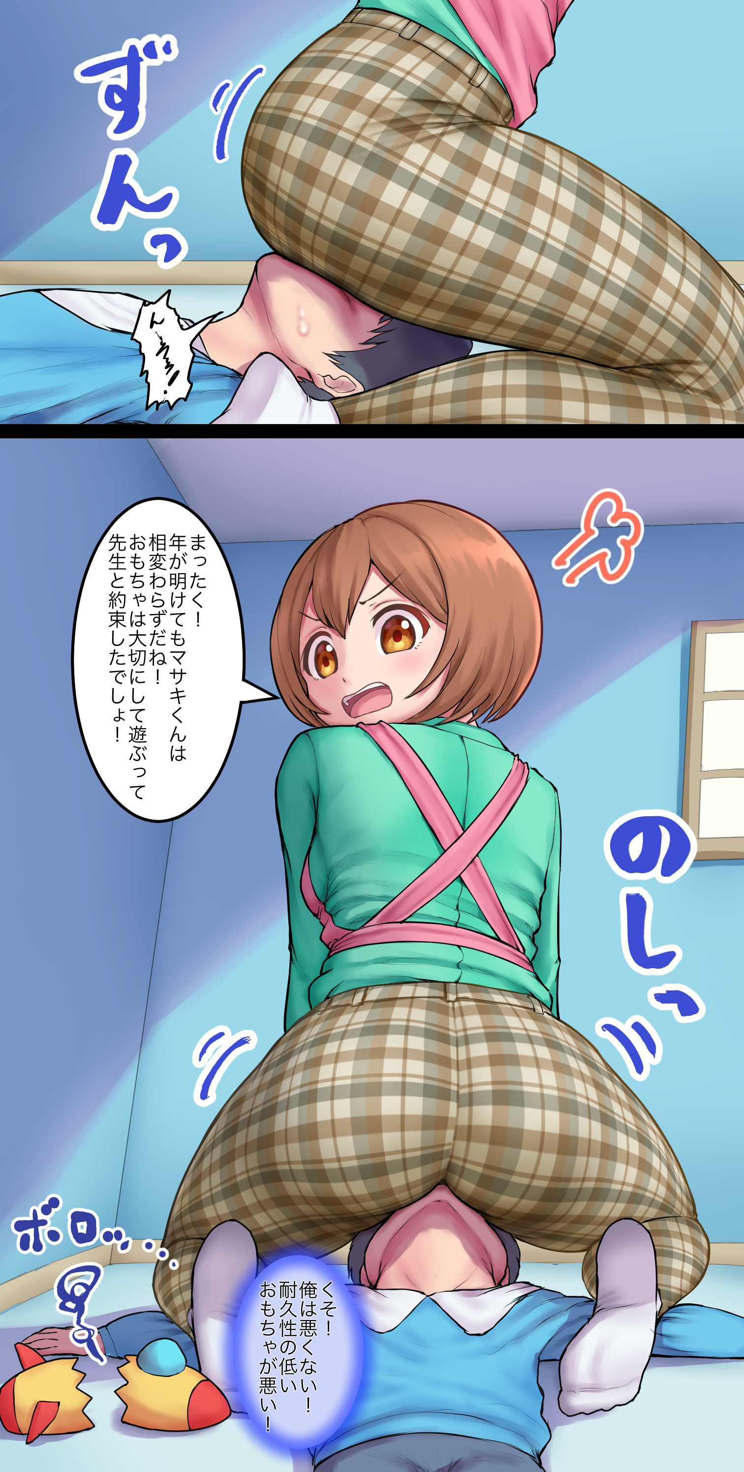 イラスト更新しました。 マサキくんの顔に座っておならでお仕置きするあや先生。 この作品は全部で3ページになります。 Illustration updated. Aya-sensei sits on Masaki's face and punishes him with a fart. This work will be 3 pages in total.