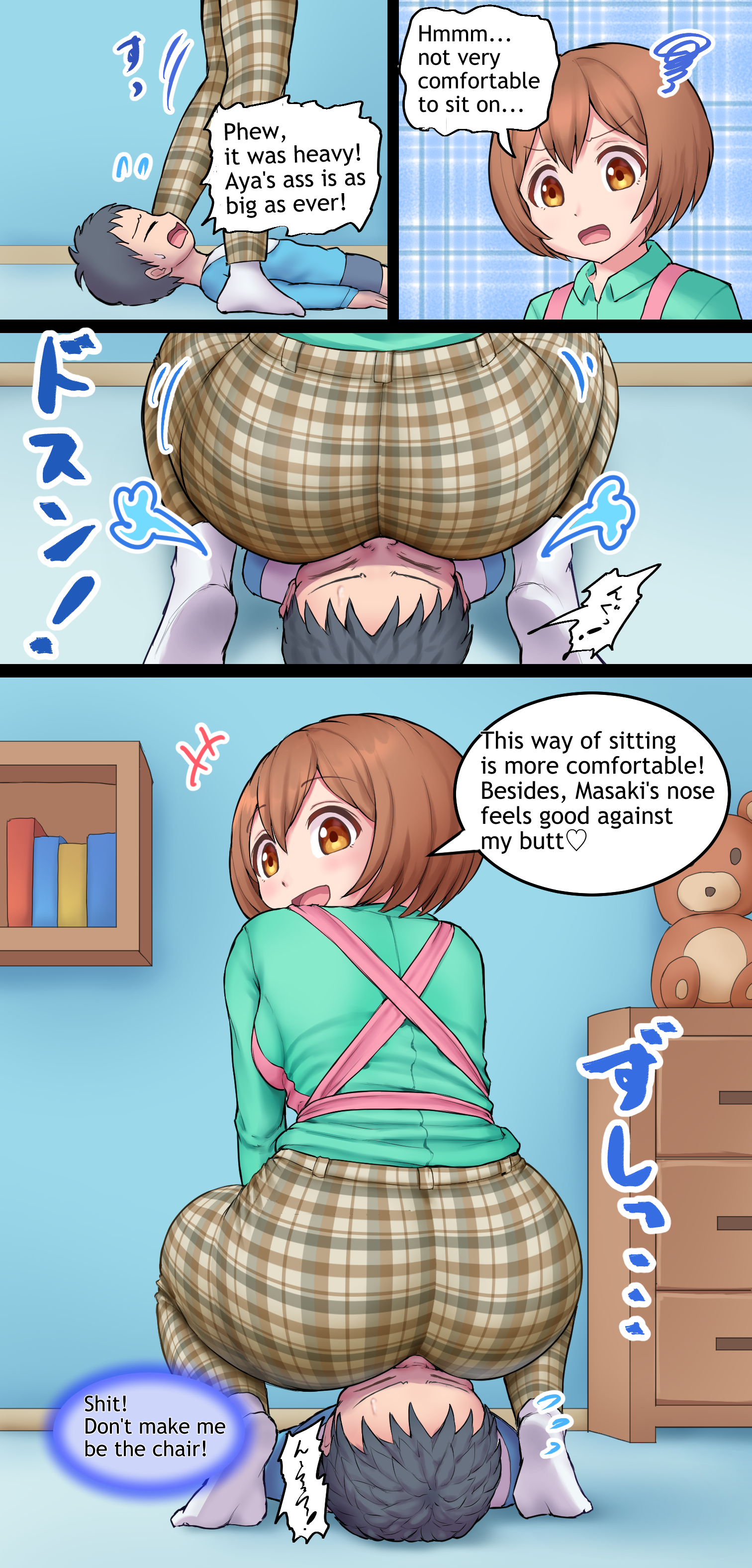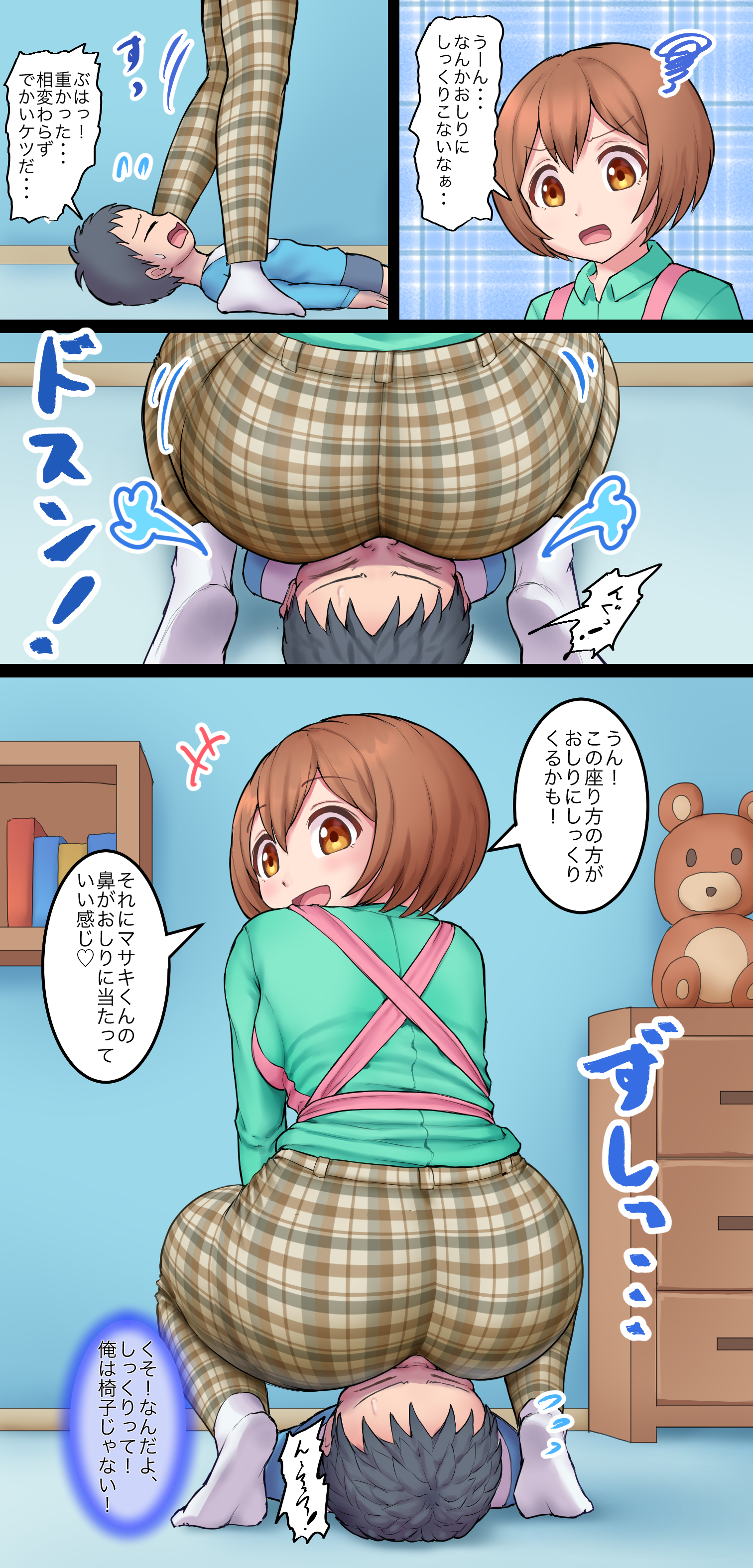 イラスト更新しました。 マサキくんの顔に座っておならでお仕置きするあや先生。 Illustration updated. Aya-sensei sits on Masaki's face and punishes him with a fart.