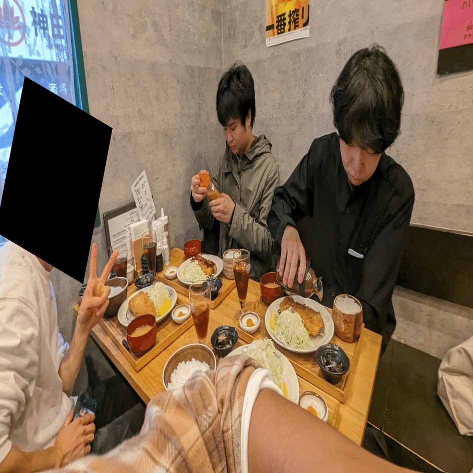 前日の飲み会で一枚も写真を撮ってなかったのでその反省をいかして食事中のカットである。