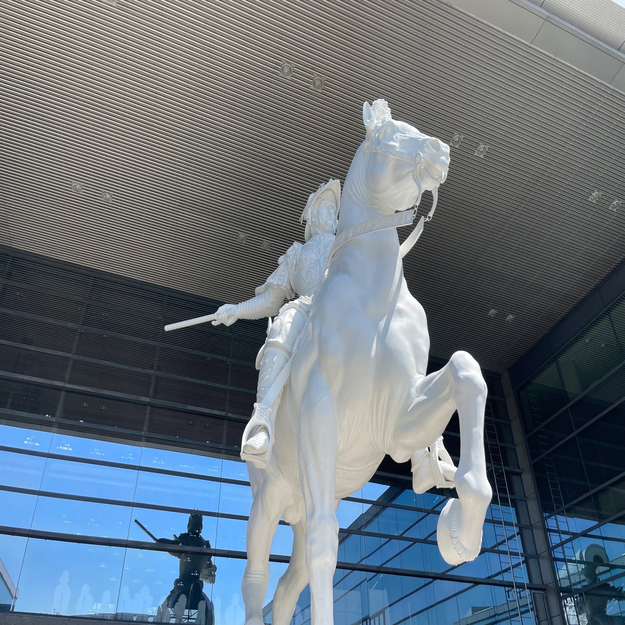 中庭には巨大な像が飾られていた。名前をスフォルツァ騎馬像というらしい。レオナルドダヴィンチが制作を手がけ、しかし未完成のまま終わった作品を名古屋市が復元したのだという。