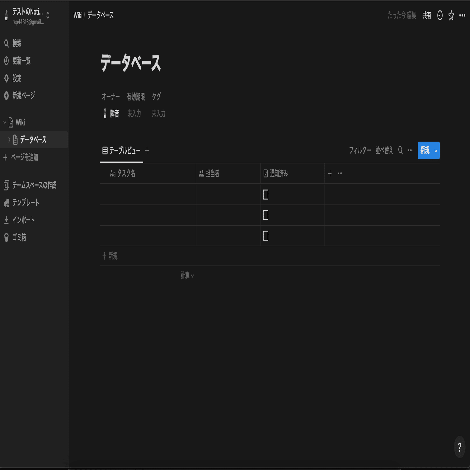 Notionにデータベースを用意。列のプロパティに以下を追加する。