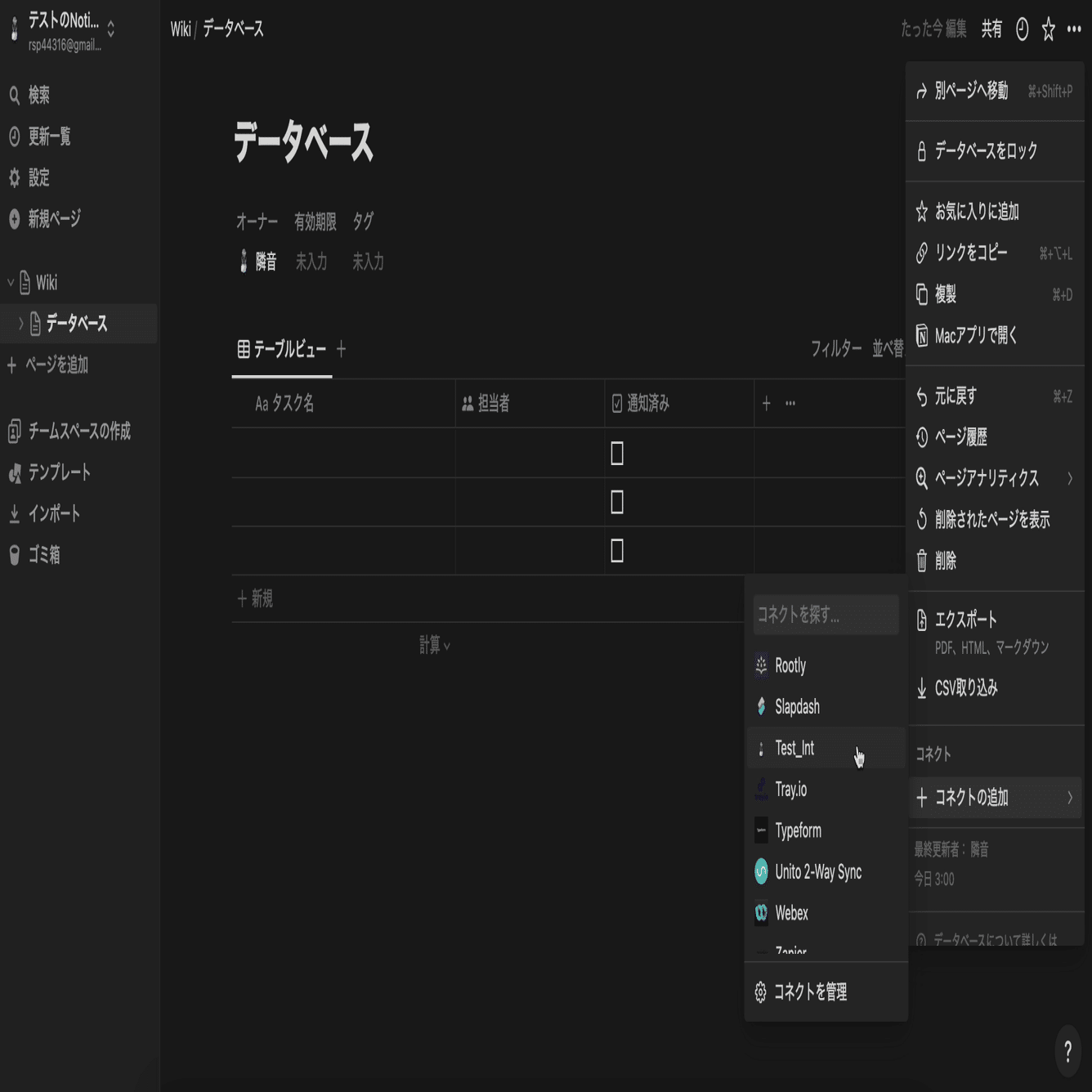 Notionのコネクトの追加から作成したインテグレーションを追加する