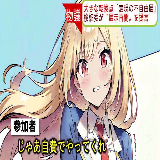 一般的な意見の多くでは、冒頭の2人が演じたように「自分のやりたい表現なら自分たちのお金で賄え!」という意見で紛糾した。まあ感覚としてもそりゃそうだろうな、という所ではある。