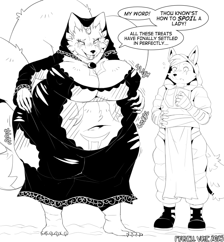 Patreon milestone reward for Kali_Sama, featuring his coyote pampering Fay Shadowrend, making the witch very fat and happy!. . . . Fay S ...