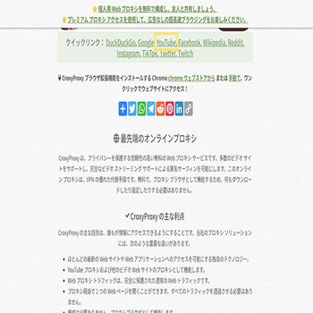 今回紹介する「CroxyProxy」は、その代表的なサイトのひとつで、無料で利用可能です。YouTubeだけでなく、Facebook・Instagram・TikTok・Twitterなどのサービスにもアクセスできます。