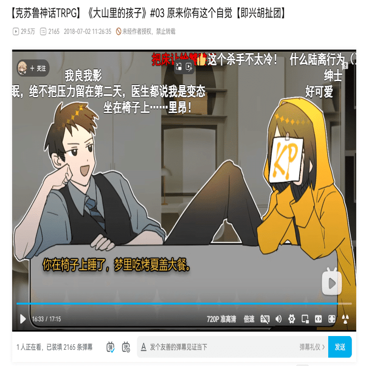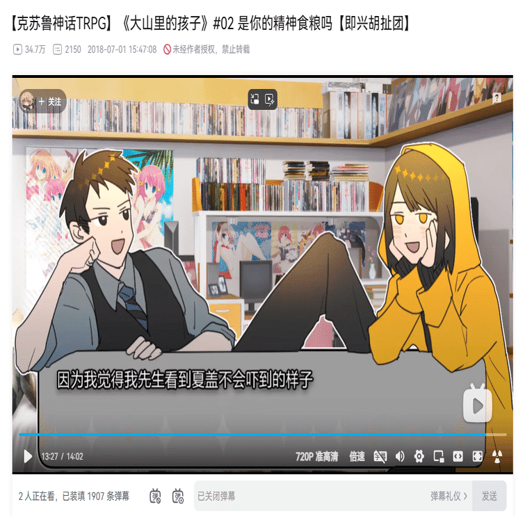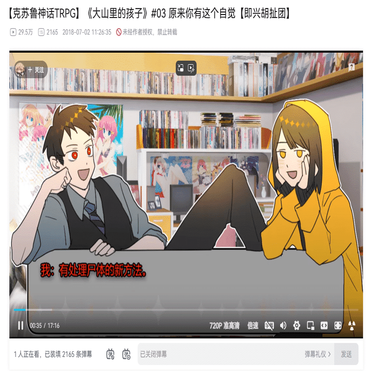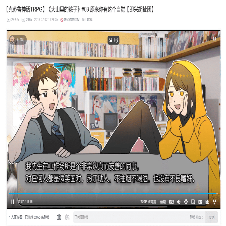 bilibiliに投稿された動画(捨て犬Aさんの楽曲及び捨て犬BさんのTPRG《大山里的孩子》)