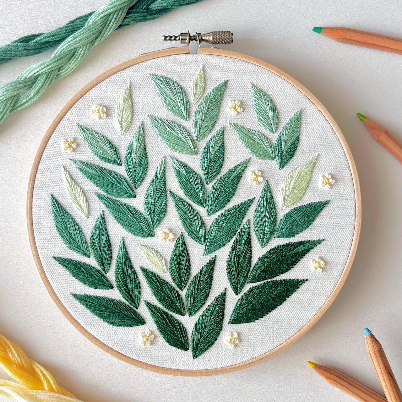 グリーンに癒されるボタニカル刺繍
