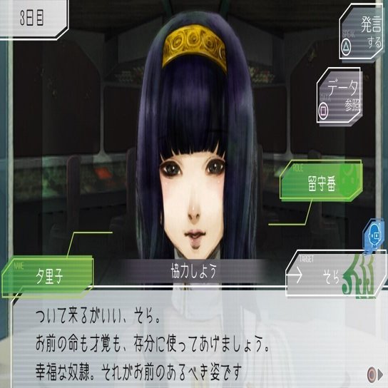 夕里子の言動を見ていて一番衝撃的だったのは、協力関係で生き残った時や好感度が高い時の台詞などを見ていると、彼女なりの好ましく思っている他人への情が垣間見えるところです。特に協力関係で生き残った時の台詞は、これからループして平行宇宙を去る主人公と、そのことをうっすら悟っている夕里子の関係性の良さが端から端まで詰まっていて、大好きな汎用台詞の一つです。締め括りの言葉が、プレイヤーがゲームを始めた時に作品側からかけられる言葉と同じ「良い旅を」なのも好き。