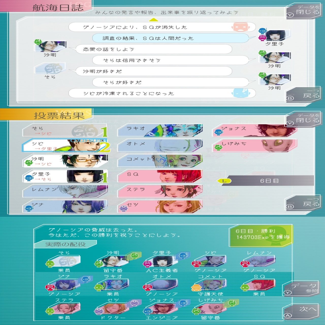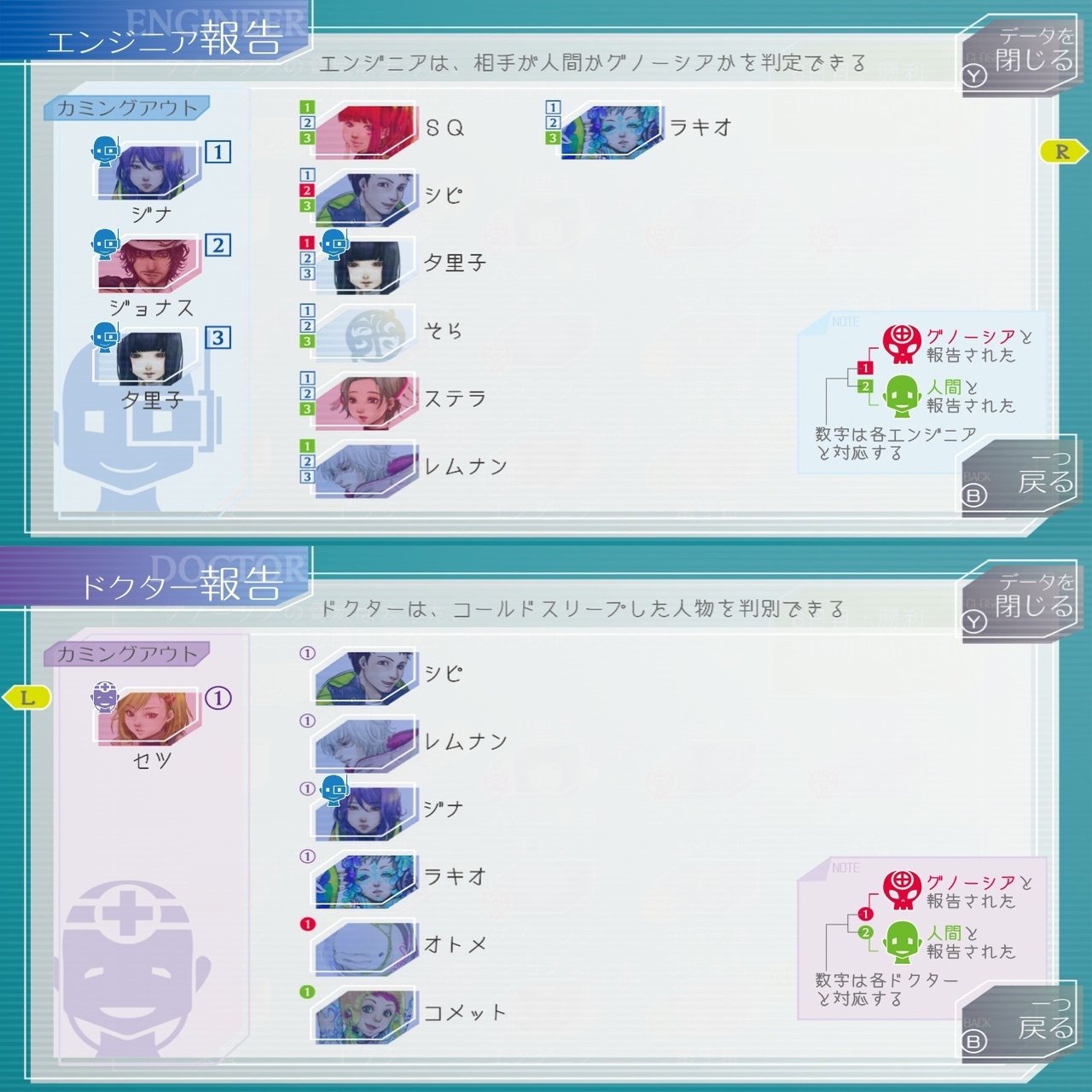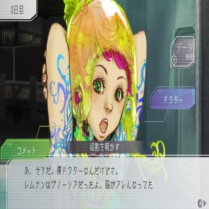 「機械がニガテ」「自分でもびっくりなことに」と言うなど普段はこういった機械に縁が遠そうな人たち。コメットがドクターでグノーシアを見つけてからCOする時の「脳がアレんなってた」の語彙が終わってる感がたまらなく好きです。