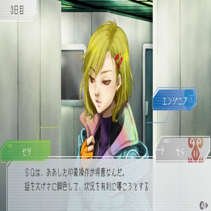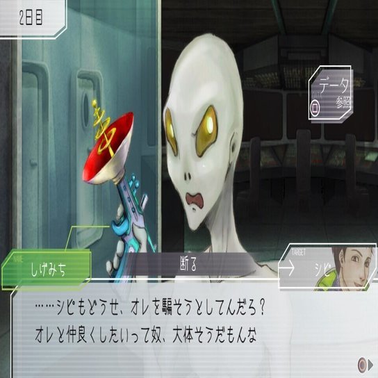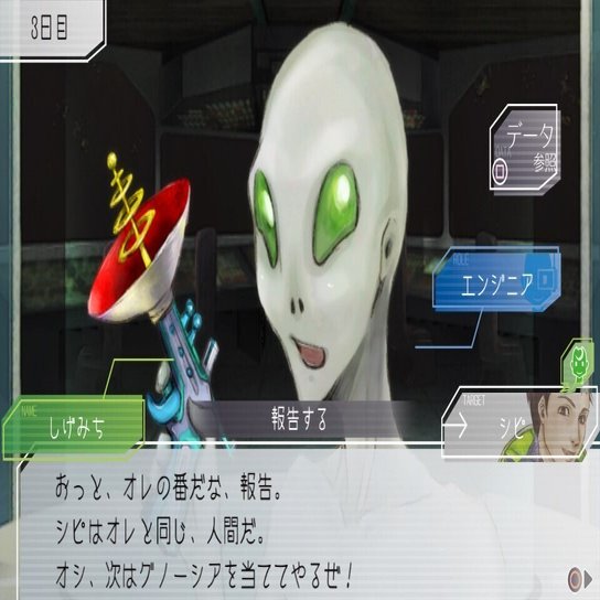 乗員たちの中ではしげみちやオトメの口調も比較的優しいですが、シピと彼らの違いは、しげみちとオトメが素の性格からくる口調を使っているのに対してシピには議論で使っている口調とは別に素の口調があるらしいと察せられるところです。その素っぽい口調も、各セーブデータで一度しか発生しないかつかなり特殊な条件下で発生するイベントでしか見られないところに、シピの社会人として円滑に物事が進むような態度を心がけているそつのなさを感じます。