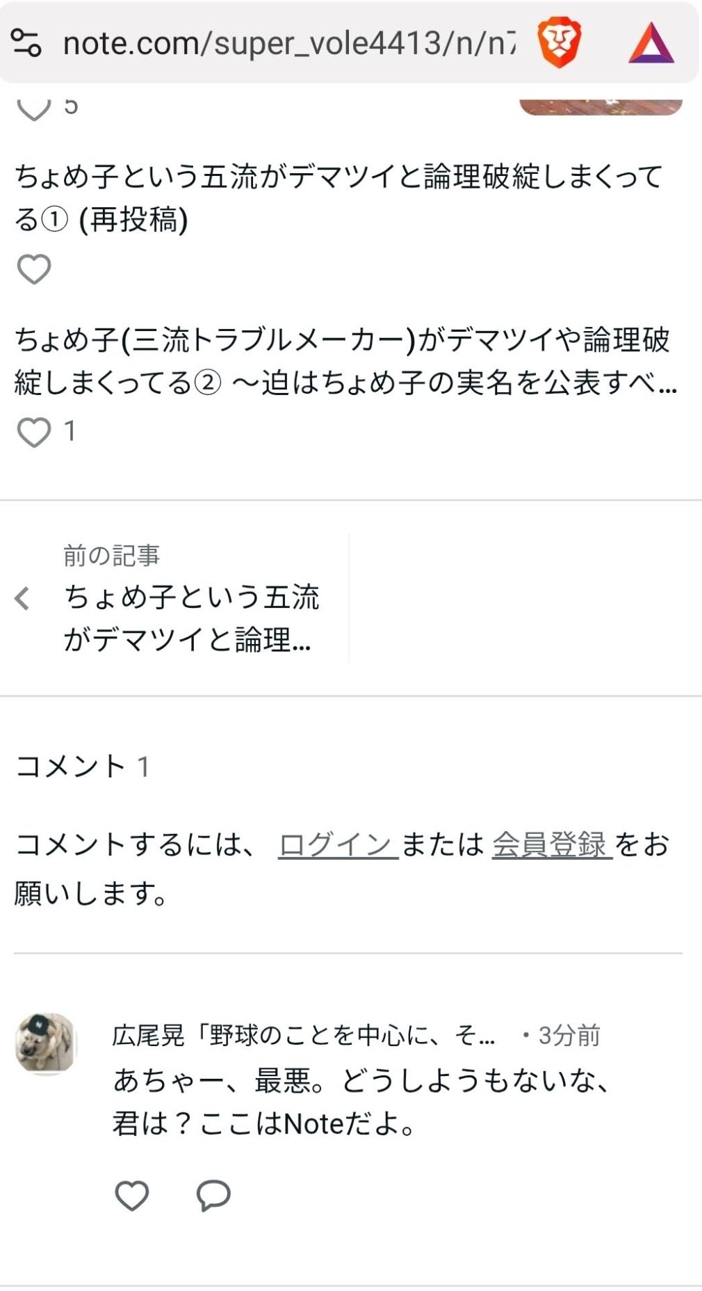 結論から言うと天道は私の書いたnote記事を誤読してるし、本人の文章力とやらは0ではないか?天道は基本的には1行の日本語なのか怪しい文しか書けておらず、文章は書けていない。まともに日本語の読み書きが出来ない知能指数なことは明らかだ。
