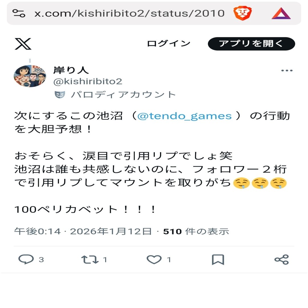 天道@tendo_gamesというアカウントがたまたま目に入ったので直近のツイートなど調べてみた。