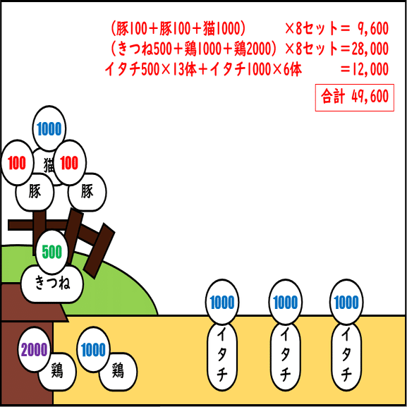 キツネ→ニワトリ、ブタ→ネコ、合間にイタチ