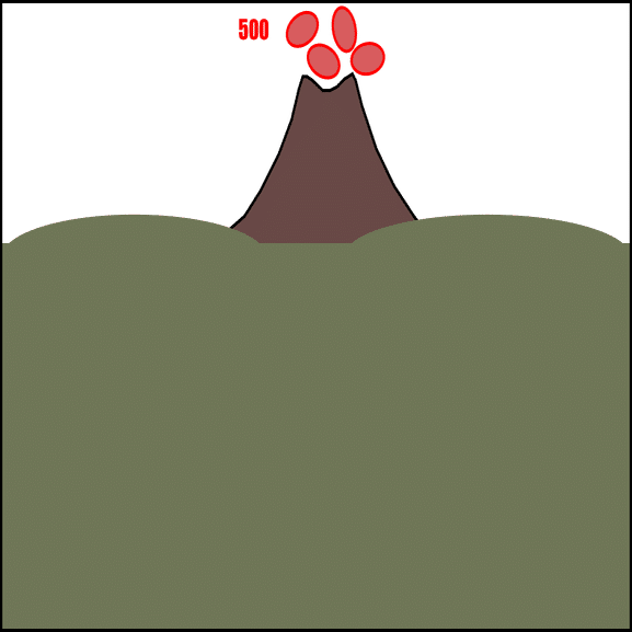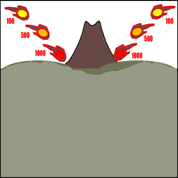 💥 1個→2個→3個と撃つと火山が噴火
