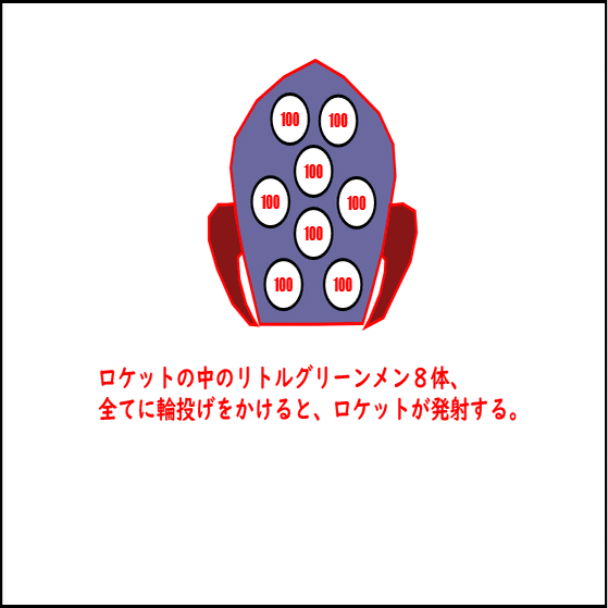 🚀 ロケット内リトルグリーンメン8体に輪投げ