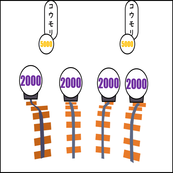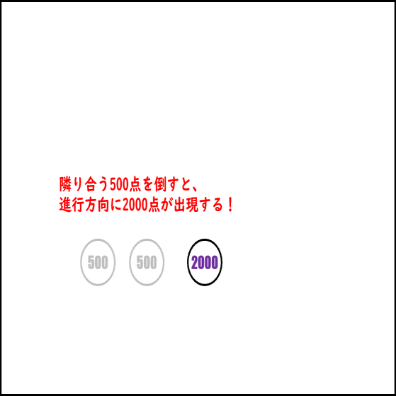 🔑 隣り合った500点を撃つと進行方向に2000点出現
