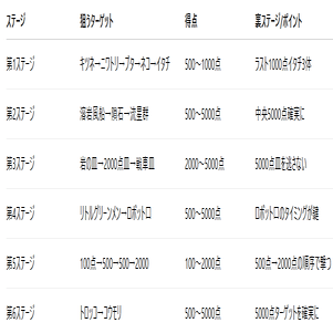 ステージ間の移動は500点→500点→2000点
