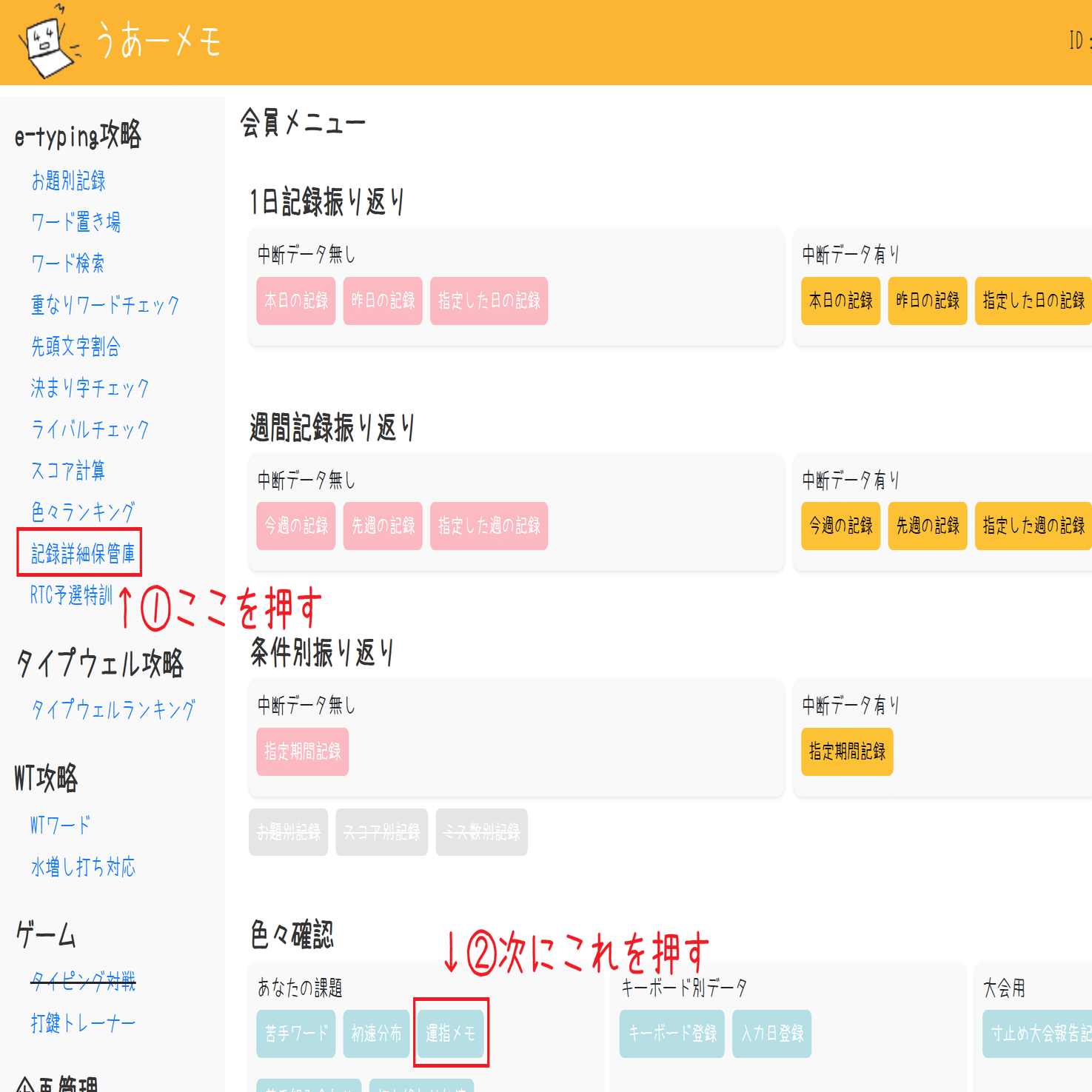 うあーメモの記録詳細保管庫(上のリンク)から運指メモを押します