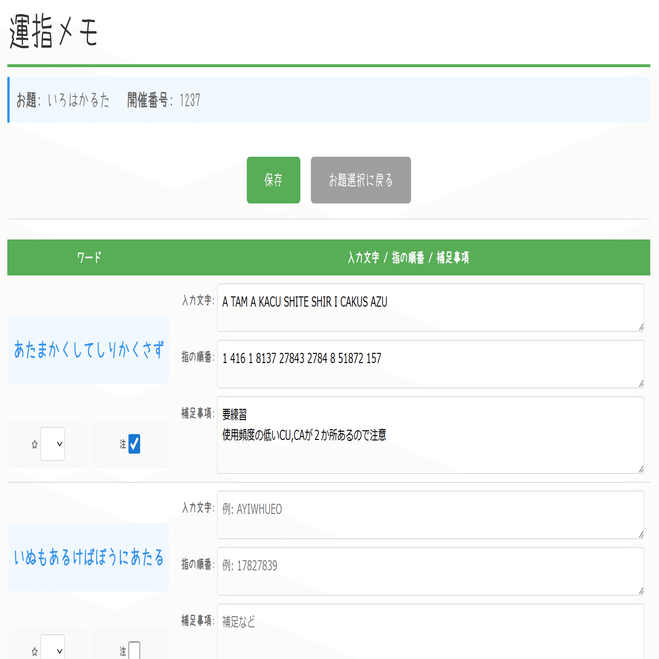 次に運指を決めるワードのお題を選びます