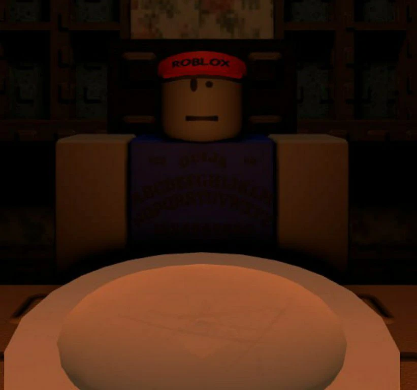 Ivan appears as a gray-skinned robloxian with the O.o face, his torso is blue with an Ouija Board decal on it, which resembles him still trying to communicate with his father after he passed away, and his legs are entirely black.