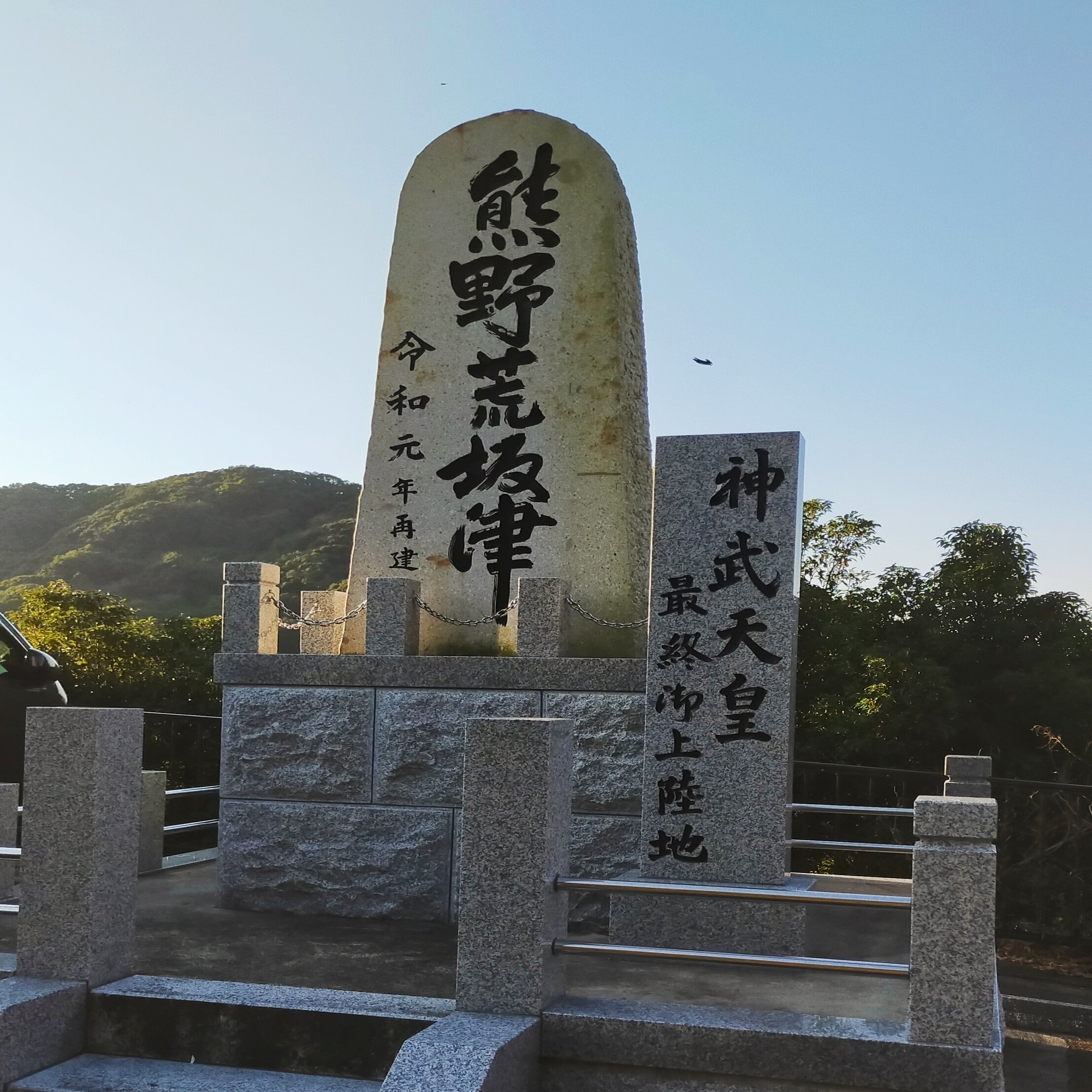 「狭野を越え」。通過しただけだからか、顕彰碑は今まで見た中で一番残念な感じでした(汚れていました)。