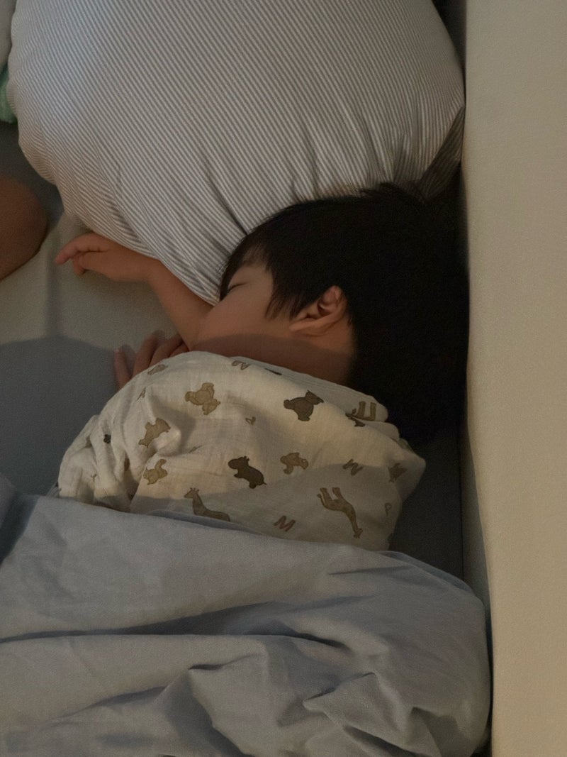 昨夜も器用にプーさん2体抱えて爆睡の息子。