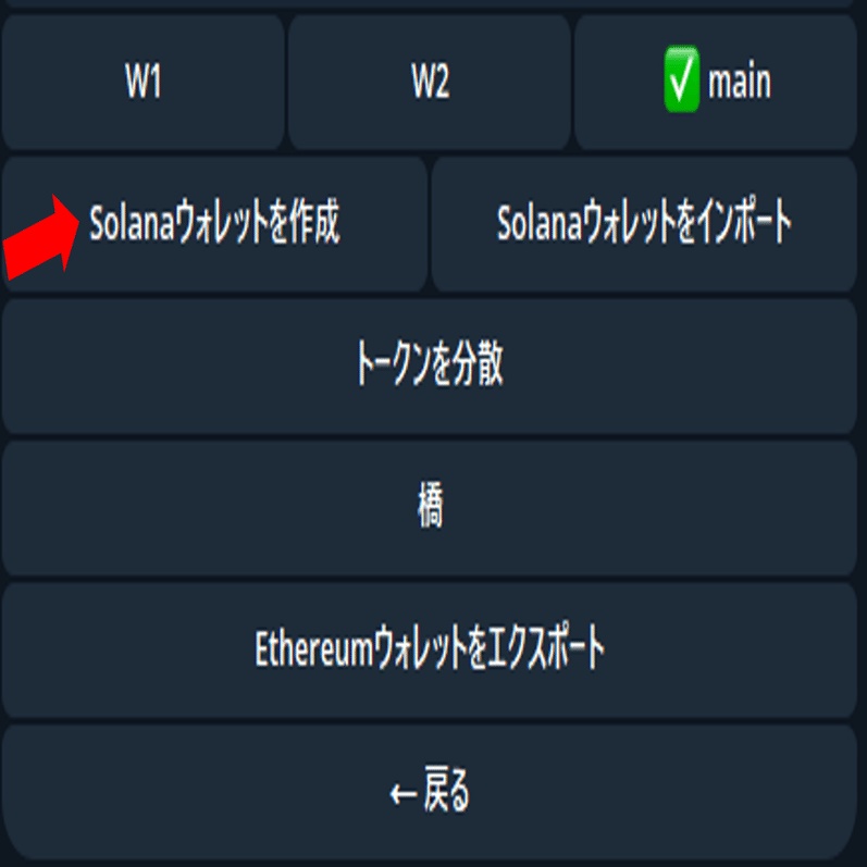 その後、solanaウォレットを作成をタップを押すとsolのお財布が完成します。(スマホの方はどちらもウォレットになっているかもしれませんが左側を選べば作成です)