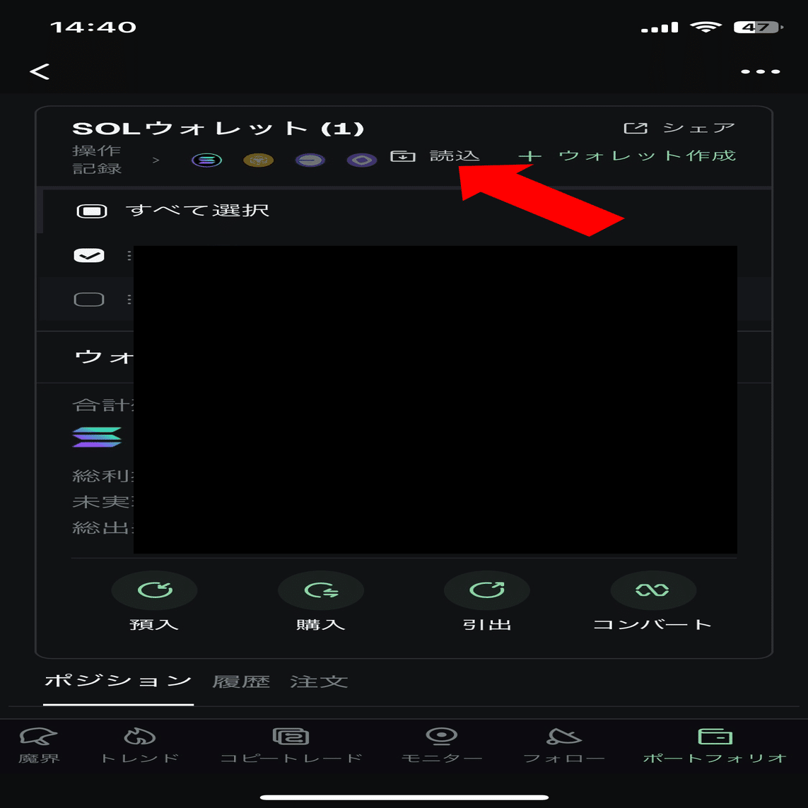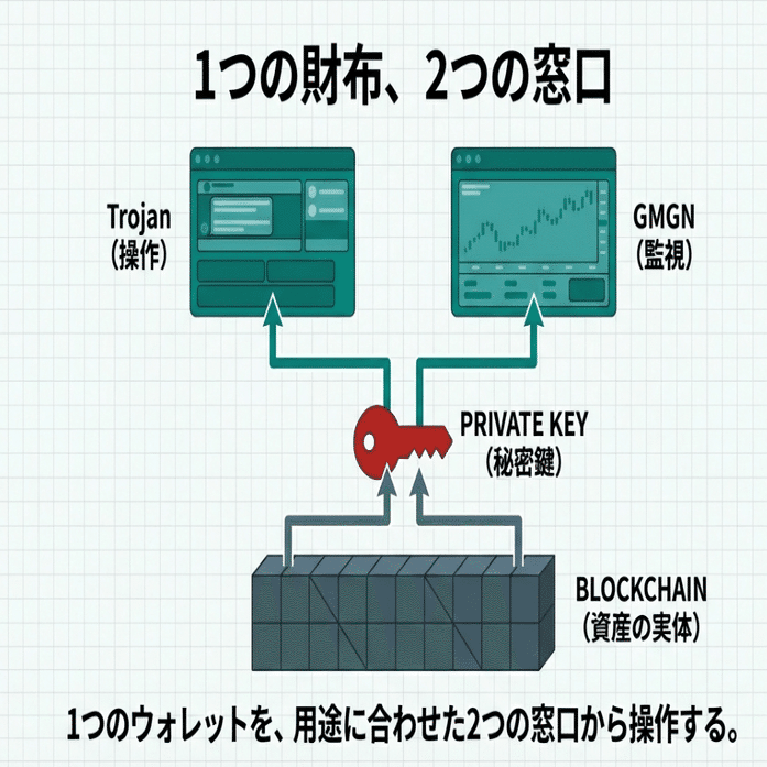 プランB(インポート): 今使っているPhantomやbitgetの中身(秘密鍵)をTrojanに入れて共有する。