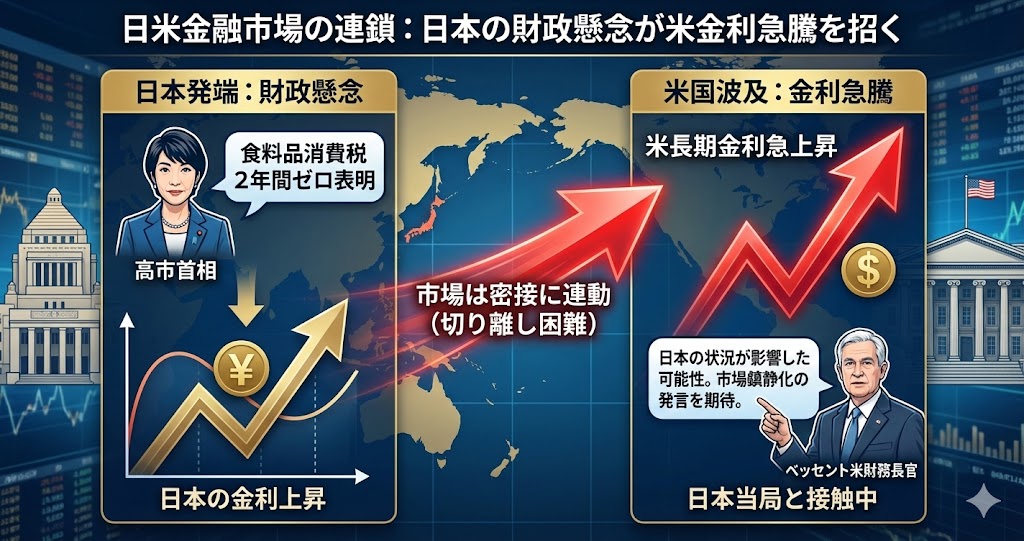 ・日本の金利上昇は、高市首相による食料品消費税2年間ゼロ表明に伴う財政懸念が要因とされています