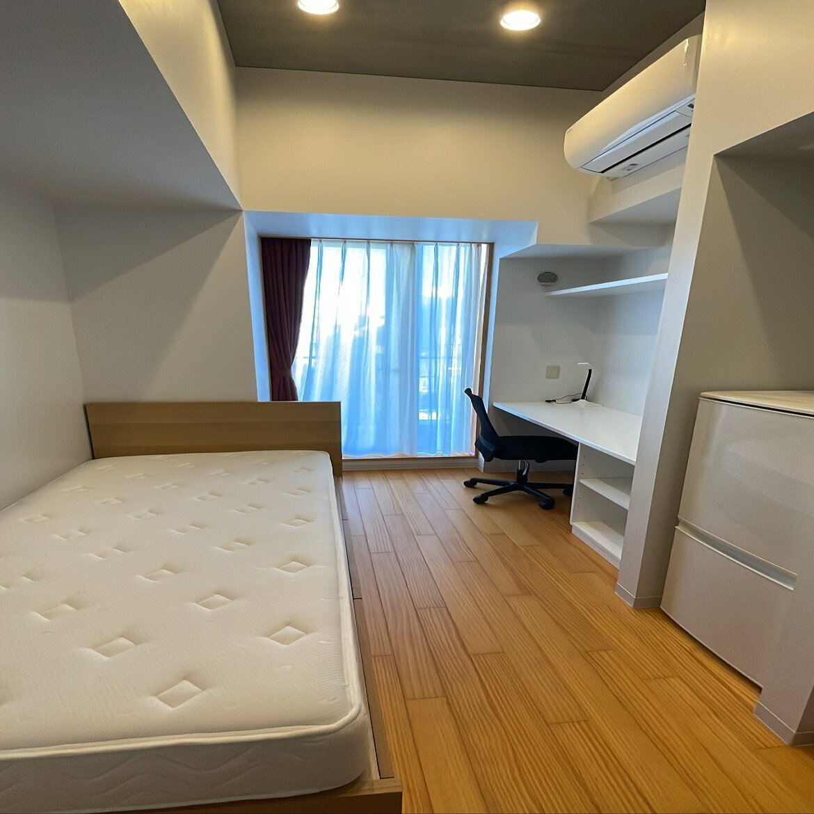 この狭さをなめてはいけません。部屋の中の最も広い平面はベッド上です。狭い部屋でも生き抜く力が身につきます💪
