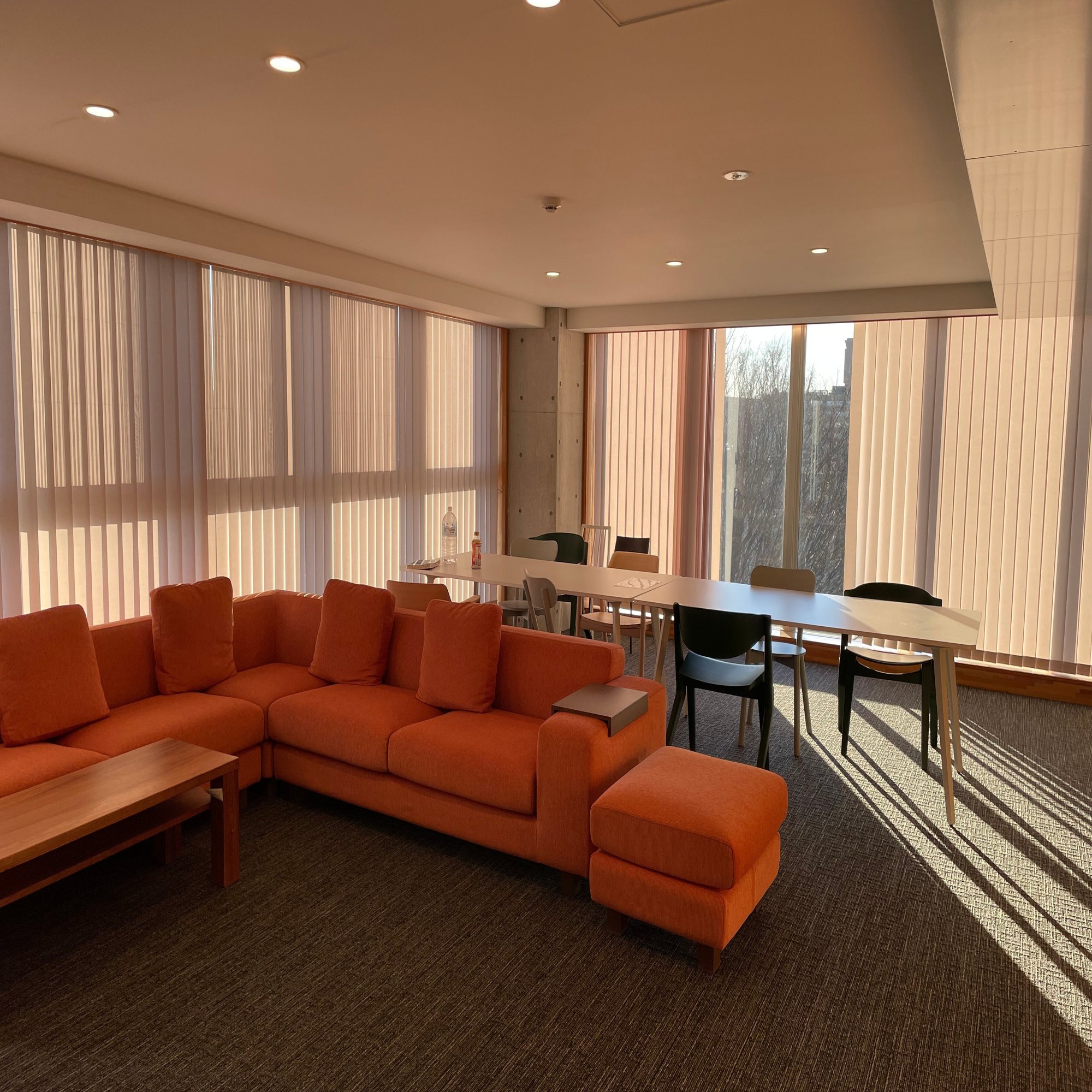 加えてフロア共用のダイニングテーブルやリビングルームがあります。共用はイヤだ!と思った方もいるかもしれませんが、なんと定期的に清掃員の方がお掃除してくださるんです🥹🧹🫧