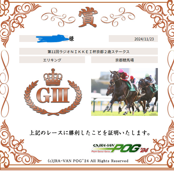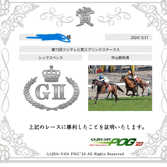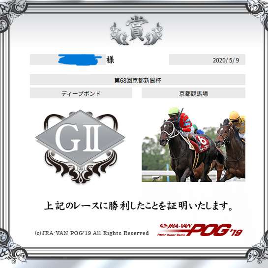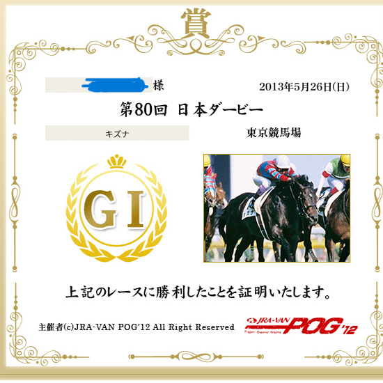 JRA-VAN以外はネットでこういう証明書みたいなのを、まだくれなかった時代なので。