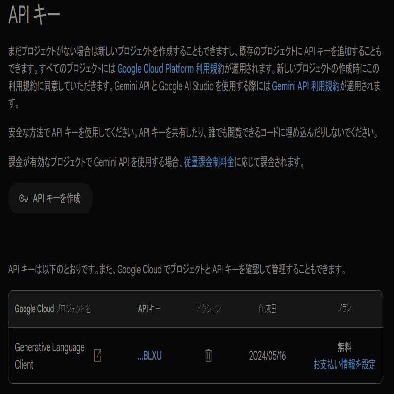 APIキーは他の人と共有したりしないように気をつけてください。